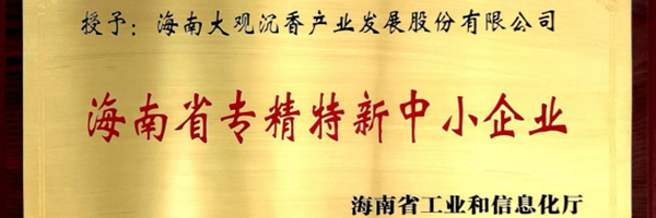 海南大观沉香公司荣获“海南省专精特新中小企业”称号