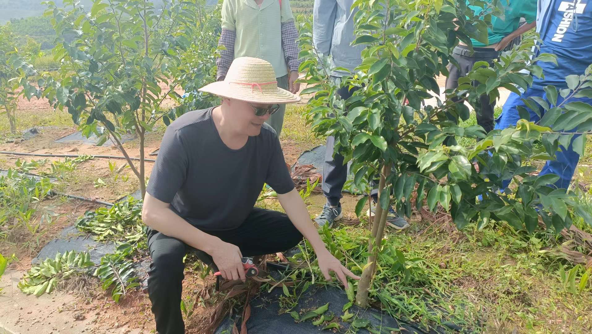 "The pruning of agarwood trees is a very important part of planting management. Good pruning can not only promote the growth of agarwood trees, trunk thicker and stronger and larger, and some do not need to make incense can bear incense, but also to prevent pests and typhoons disaster. And pruning is not good, not only affect the growth of agarwood trees and agarwood quality and weight, but also may cause the death of agarwood trees." In the field guidance, President Yang Ziwen from the role of agarwood tree pruning, pruning methods and precautions and other aspects of in-depth explanation, and summed up the "four cut two, three cut two, two cut one, cut small not big" mnemonic to everyone live demonstration,The atmosphere of the teaching scene is warm and interactive, the combination of lectures and hands-on exercises per person, we quickly mastered the pruning techniques for the next base of 500,000 agarwood trees pruning work laid a good foundation.