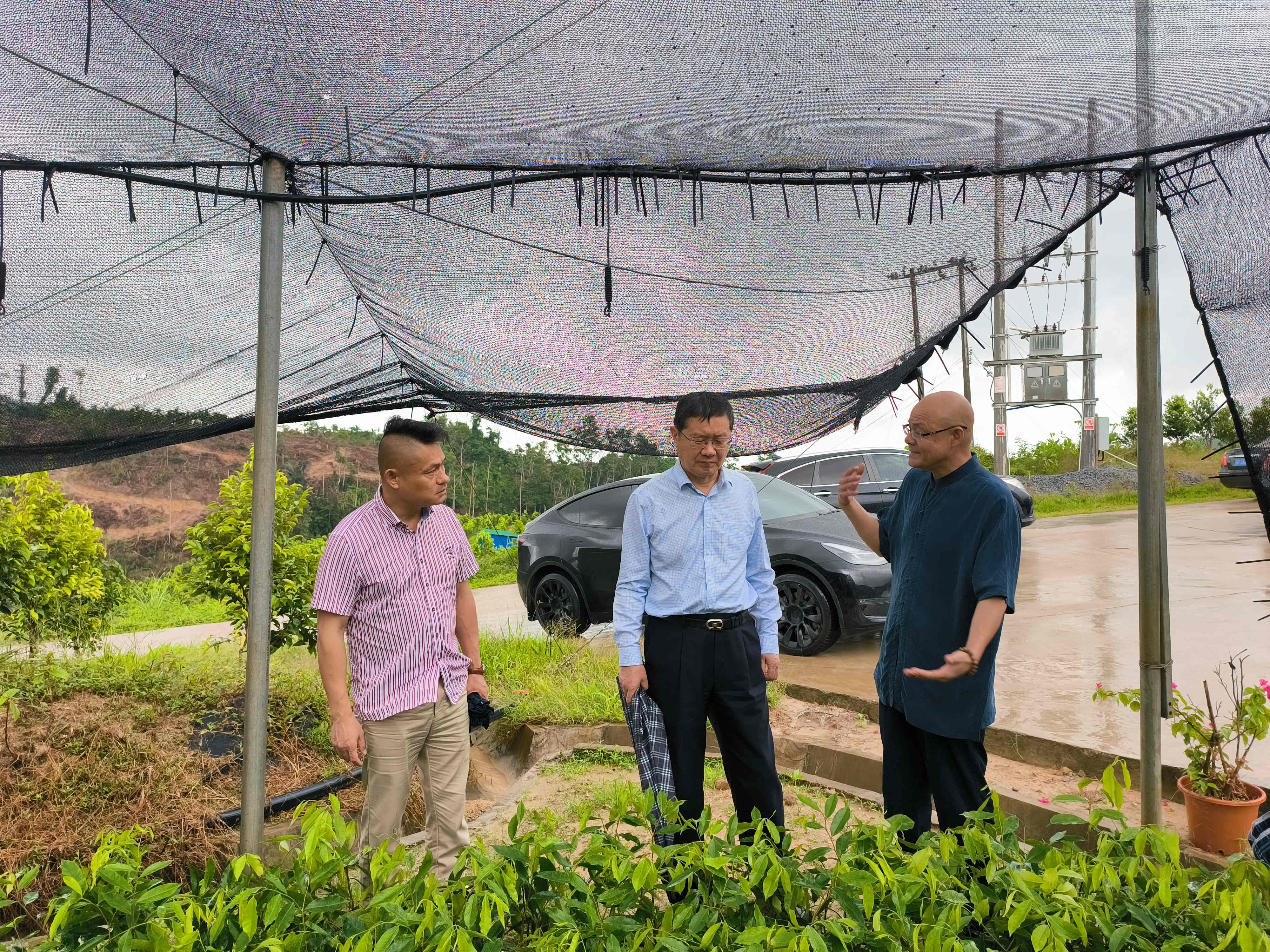 At Nursery No. 2, President Yang Ziwen introduced in detail to Vice Chairman Chen Malin the company's advantages and progress in cultivating Hainan's indigenous sinker seedlings; In the conference room of the complex, president Yang Ziwen introduced the company's philosophy of technology first to Vice Chairman Chen Malin, the application of intelligent agriculture system and blockchain traceability system in the whole base, as well as the preparation for the construction of the industrial park. Vice Chairman Chen Malin spoke highly of the achievements made by Da Guan Agarwood Company.
